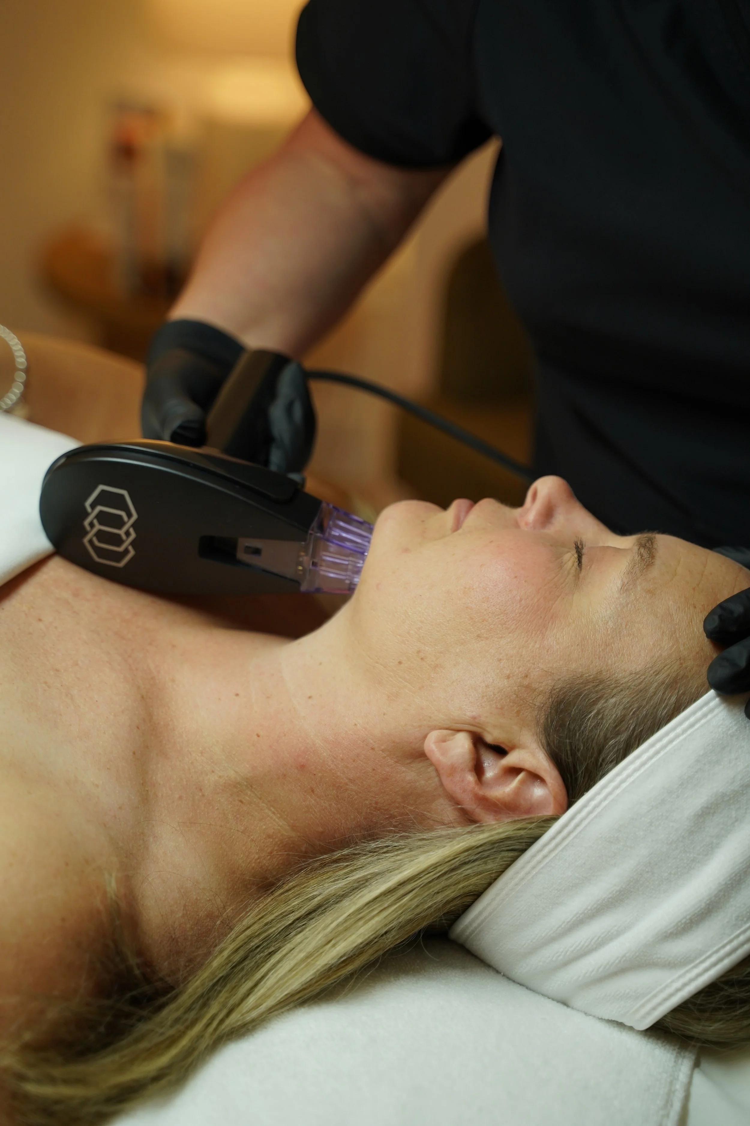 Delivering 24 silicone-coated needles beneath the skin, sending precise radio frequency into the tissue, tightening and stimulating further collagen and elastin production.